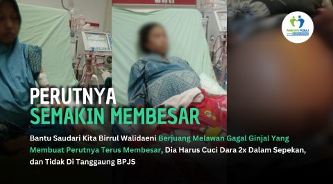 Perut yang terus membesar membuat saudari kita BIRRUL WAALIDAENI terus kesakitan, beliau mengidap penyakit gagal ginjal kronis yang menyebabkan makanan dan minuman tidak bisa di cerna sehingga hanya bisa menumpuk didalam perut.